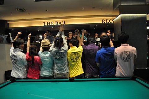 ※8ボールは、通常は自分のグループボール7個がポケットされた後に8番を狙いにいけるようになるものですが、本大会ではハンデの個数がポケットされた時点で、8番を狙いにいけるようになります。