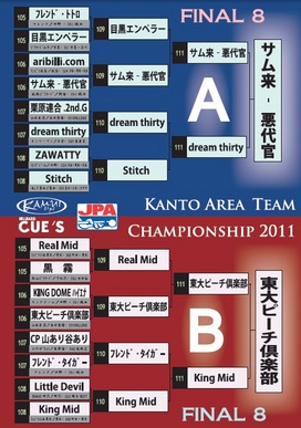 Cクラスはグループボール4個がポケットされた時点で8番を狙って良い、ということです。もちろん、5個目を入れつつ8番に出す、ということも可能です。